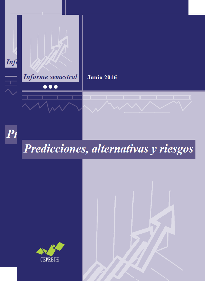 Predicciones, alternativas y riesgos incluye un análisis detallado de la situación actual, previsiones alternativas, revisión de expectativas y análisis de los principales condicionantes y riesgos con los que se enfrenta la economía española, tanto a corto, como a medio y largo plazo. Está estructurado en torno a once grandes capítulos, que se corresponden con el análisis del entorno internacional general, centrado específicamente en las grandes economías desarrolladas; el análisis de la Eurozona, considerada globalmente, los aspectos específicos de crecimiento, detallando los componentes básicos de la demanda agregada; la evolución del empleo, considerando tanto factores de oferta como de demanda de mano de obra; déficit público, especificando las principales partidas de ingresos y gastos de las AA..PP. Junto con la deuda global y el seguimiento de los Presupuestos Generales del Estado; inflación, con análisis de los principales factores de coste, tanto internos (salarios), como externos (precios internacionales); tipos de interés y tipos de cambio, centrados básicamente en el análisis de la política monetaria y la evolución del tipo de cambio frente al dólar; y el sector exterior, incluyendo evolución de la balanza de pagos y análisis de competitividad exterior. Se incluyen dos capítulos adicionales dedicados al análisis detallado de los posibles escenarios alternativos de predicción. Adicionalmente, el informe recoge un anexo de tablas donde se presentan las predicciones elaboradas por CEPREDE, tanto a nivel trimestral, con un horizonte de predicción de dos años y un detalle de más de 100 variables, como a nivel anual, donde el horizonte de predicción se extiende hasta 2030 y el detalle de variables supera las 400.